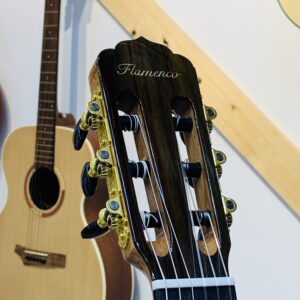 Đầu cần đàn được in logo Flamenco cách điệu để thể hiện sự đẳng cấp, chất lượng của thương hiệu đến từ Tây Ban Nha này, ngoài ra, Flamenco JX35 Pro được lắp bộ khóa đàn cao cấp lại cảm giác êm tay, nhẹ nhàng khi điều chỉnh dây đàn.